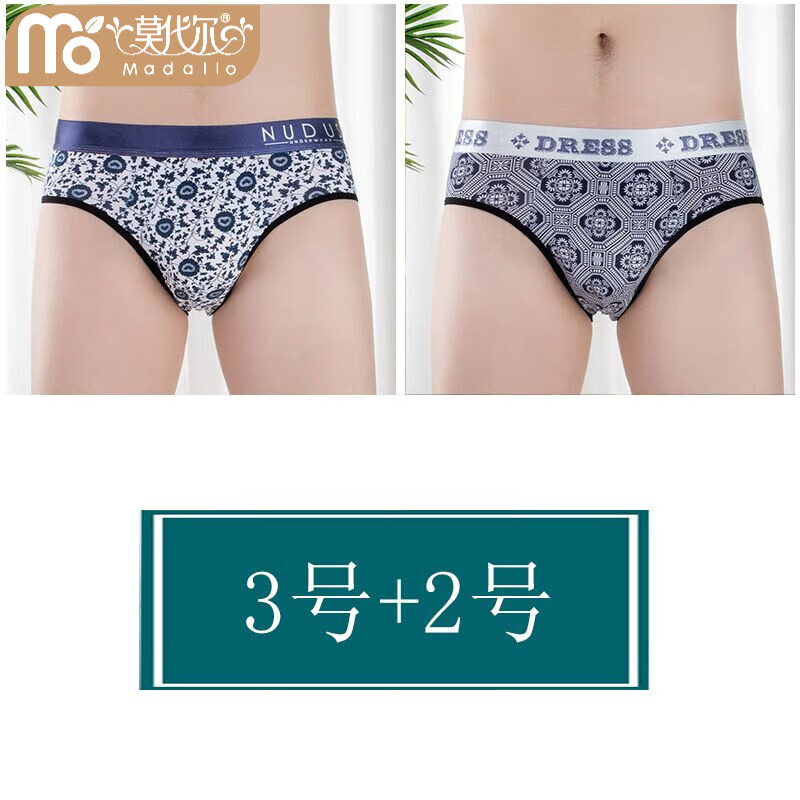 莫代尔男士三角内裤男纯棉舒适透气弹力不卡裆中腰裤衩个性潮流印花短裤 2条装:3号色+2号色 XXL