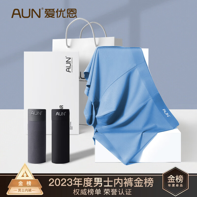 AUN爱优恩内裤男抗菌平角裤中腰宽松男士内裤莫代尔纯色四角短裤四季 3条混色盒装 2XL码(70-80)