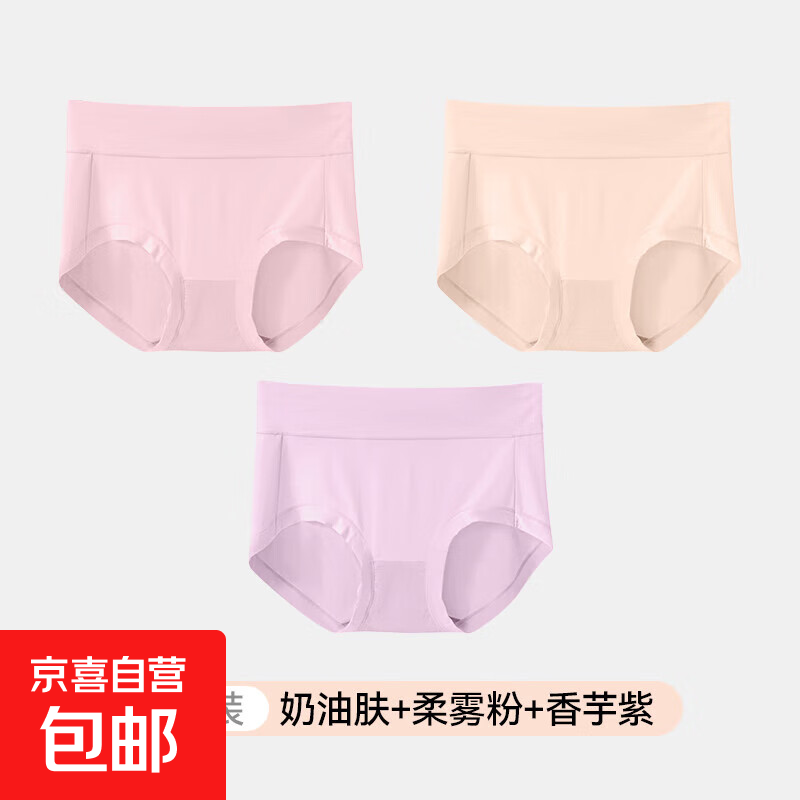 莫代尔女士内裤高腰收腹提臀纯棉裆抗菌胖mm女生三角短裤头 (3条装)奶油肤+柔雾粉+香芋紫 2XL(推荐140-160斤)