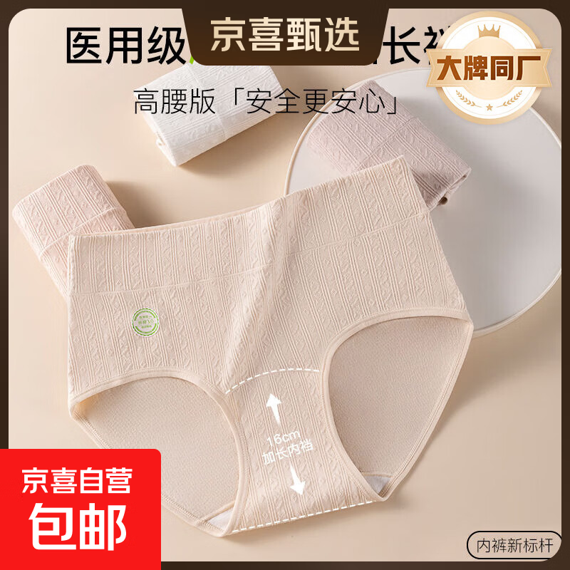 妇炎洁牌内裤女2025新纯棉抗菌全棉裆中高腰加长底裆无痕舒适三角