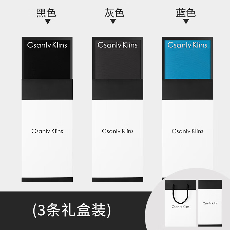 CK正品内裤男士冰丝男生四角平角短裤头夏季无痕薄款男款2026新款 黑色-灰色-蓝色【3条】 CK礼盒装 2XL 适合125-145斤