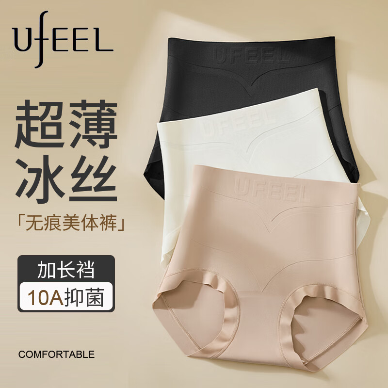 UFEELV形塑型收腹细腰提臀裤甄选桑蚕10A抗菌材料透气内裤女1裤3穿1912 黑色+肤色 2条 2XL (140-160斤)