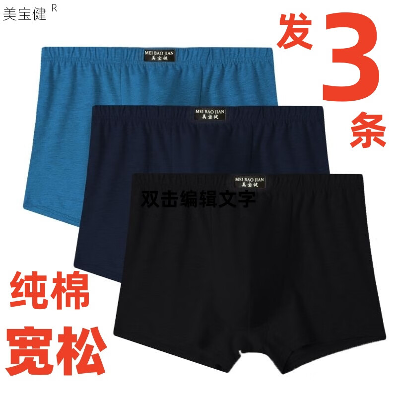 美宝健男士纯色自然腰内裤平角透气吸汗四角全棉宽松大码中老年爸爸裤衩 3条装)纯棉)多色随机搭配 3条 2XL (体重110斤-130斤) 纯棉