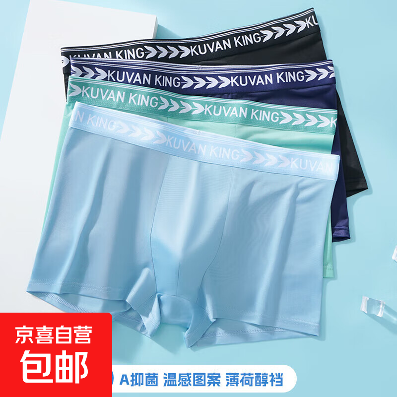 男士内裤男冰丝凉感抗菌平角裤中腰短裤速干透气四角裤头夏季冰丝 薄荷绿+远藏蓝 薄荷醇凉感 2条 3XL 152-170斤