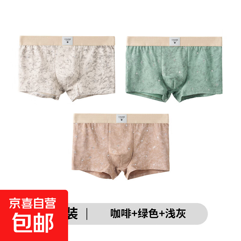 新款星空男士内裤时尚个性平角裤舒适透气四角裤潮流青年运动短裤 咖啡+绿色+浅灰 3条 2XL 【140-160斤】