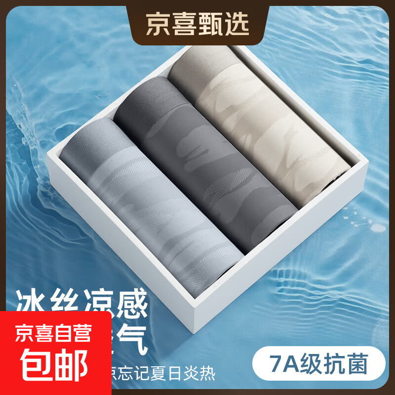 夏季冰丝男士内裤7A抑菌无痕云纹抗菌平角四角裤衩 【3条】冰感无痕丨7A抑菌 3条 2XL 【建议120-140】