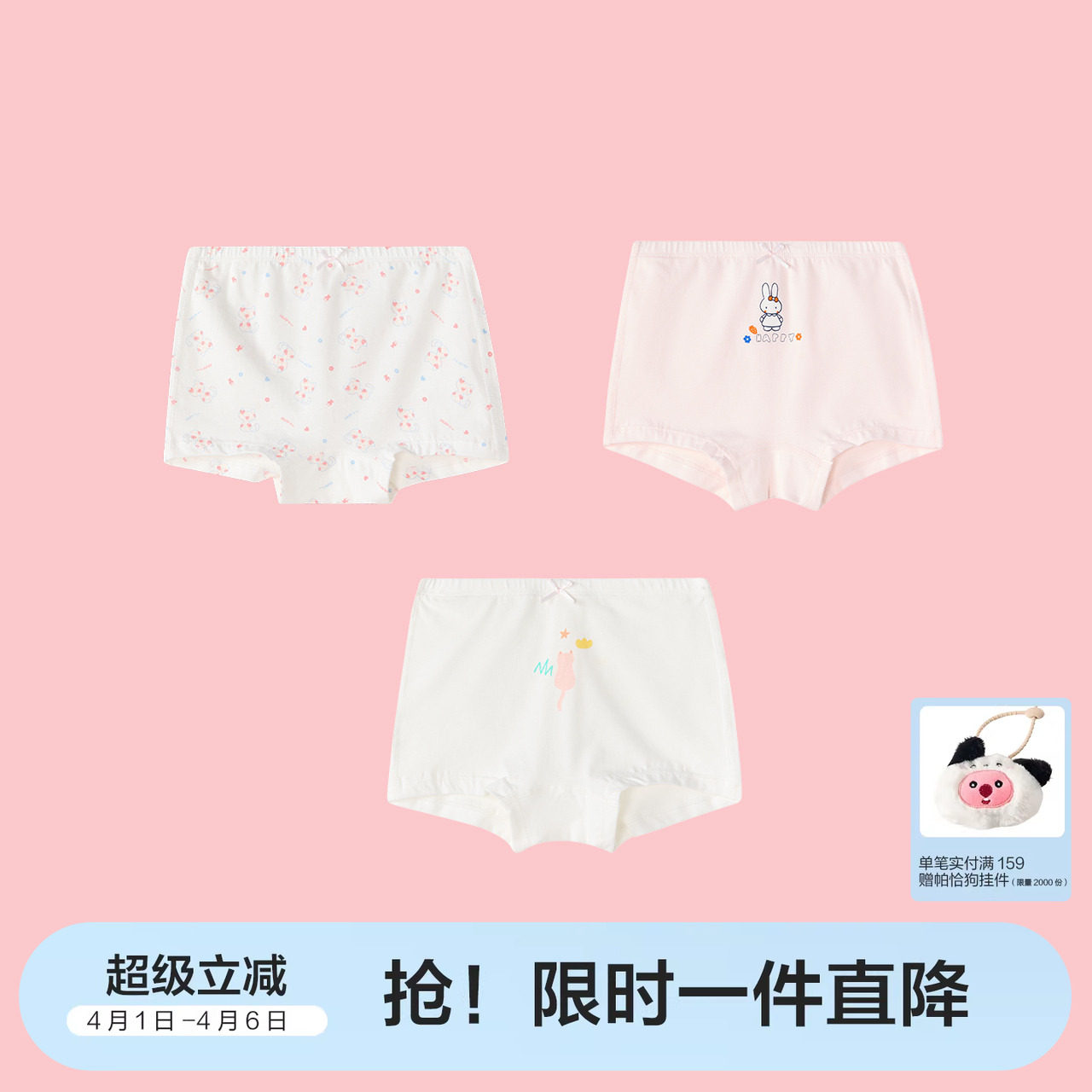 【3条装】笛莎女童内裤大童女宝宝四角平角短裤儿童女孩裤头裤衩