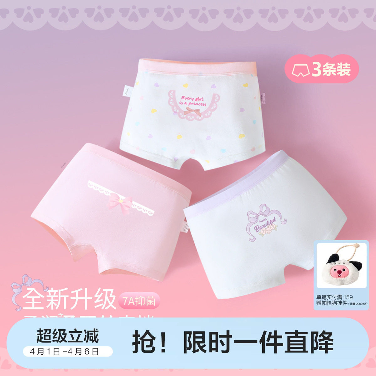 【3条装】笛莎官方童装女童内裤春季新款儿童女孩儿童洋气平角裤