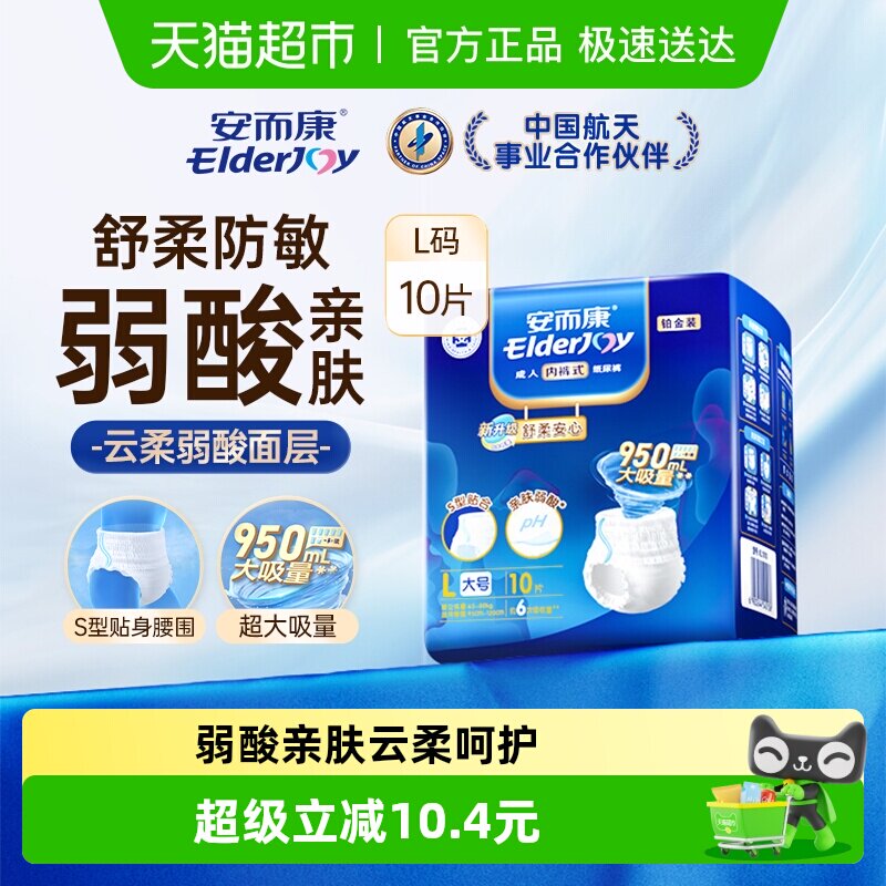 安而康成人拉拉裤舒柔安心内裤型纸尿裤L码10片男女老人用安尔康