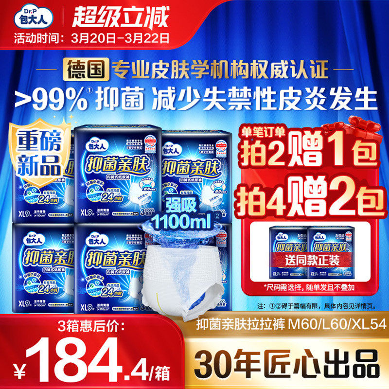 包大人抑菌亲肤拉拉裤XL码54片内裤式纸尿裤加大码成人专用