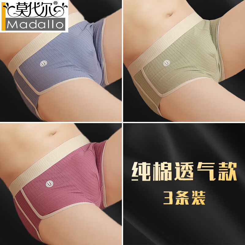 中腰内裤女纯棉抗菌提臀舒适全棉裆透气女式大码纯色三角裤头
