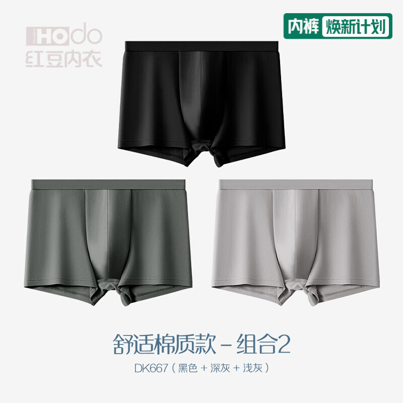 红豆(Hodo)莫代尔内裤男抗菌底裆运动透气大码男士平角裤四季柔软爽滑四角裤 667组合二(棉常规款) 3条 2XL (180)