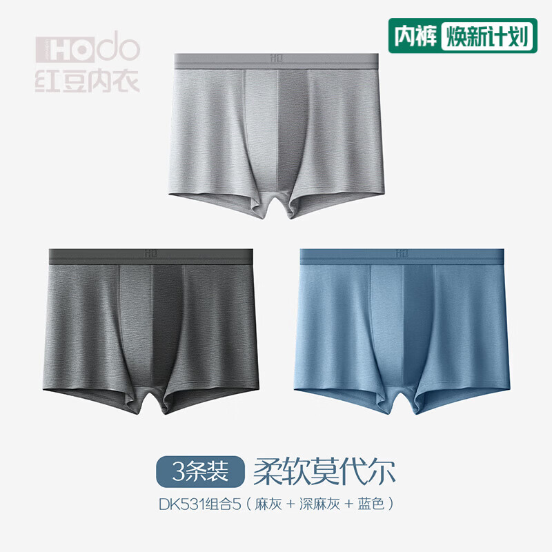 红豆(Hodo)莫代尔内裤男抗菌底裆运动透气大码男士平角裤四季柔软爽滑四角裤 531组合五(莫代尔常规款) 3条 2XL (180)