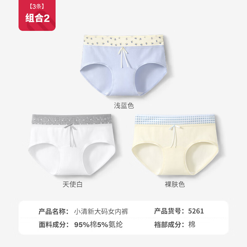 i gkppnj女士纯棉中腰内裤新疆棉10A抗菌加长裆碎花蝴蝶结三角内裤 3条-组2 3XL