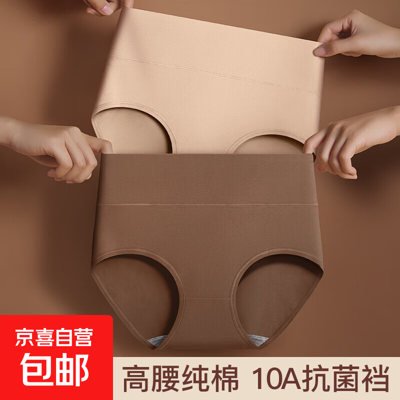 美拉德高腰纯棉内裤女10A抑菌石墨烯底裆收腹提臀简约纯色三角裤 3条装-浅杏+红棕+白色 2XL (110-130斤)