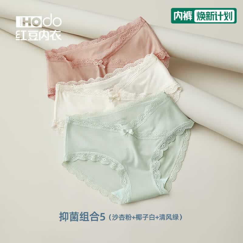 红豆(Hodo)女士莫代尔抗菌内裤蕾丝性感中腰短裤透气少女式三角裤头3条装 组合五 3条 2XL (175)