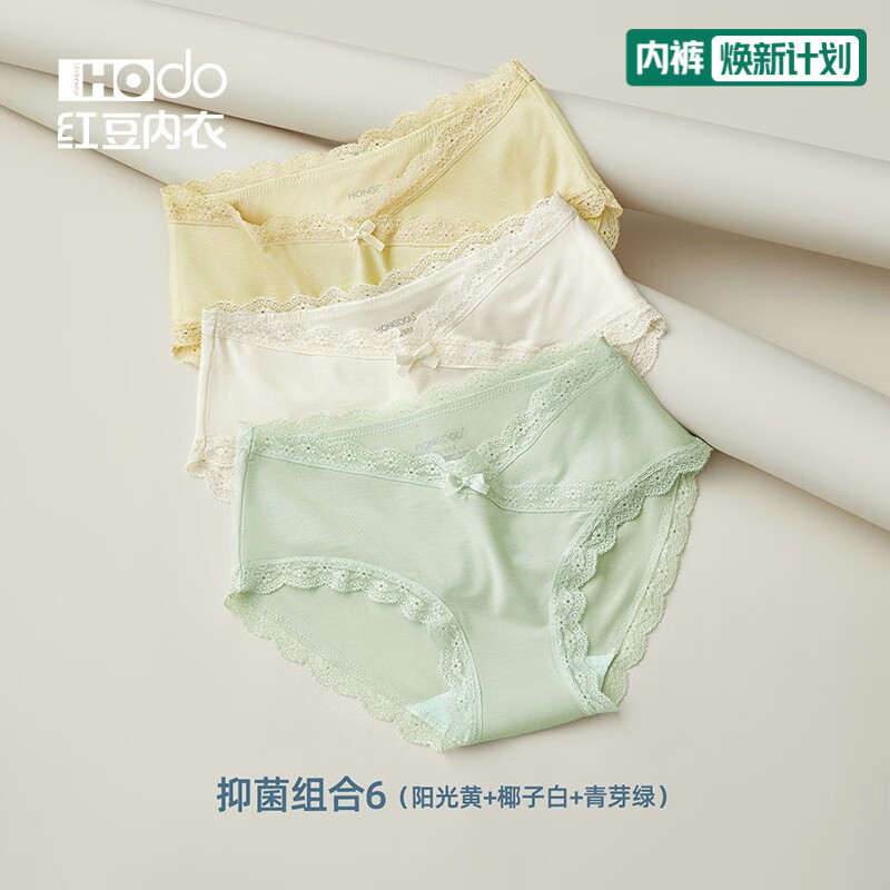 红豆(Hodo)女士莫代尔抗菌内裤蕾丝性感中腰短裤透气少女式三角裤头3条装 组合六 3条 2XL (175)