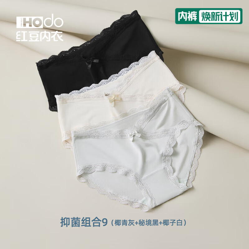 红豆(Hodo)女士莫代尔抗菌内裤蕾丝性感中腰短裤透气少女式三角裤头3条装 组合九 3条 2XL (175)