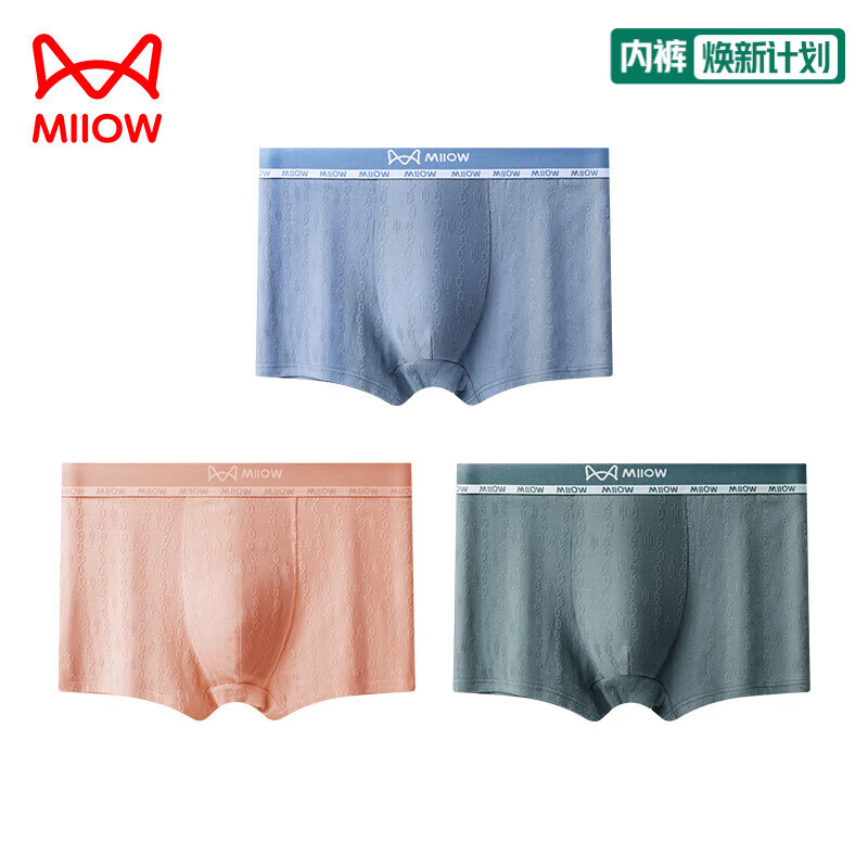 莫代尔新款男士内裤纯棉肌理舒适透气平角裤潮流时尚男短裤四角运动裤衩 墨染黑+潮汐蓝+沙之杏(装) 3条 2XL 140-160斤