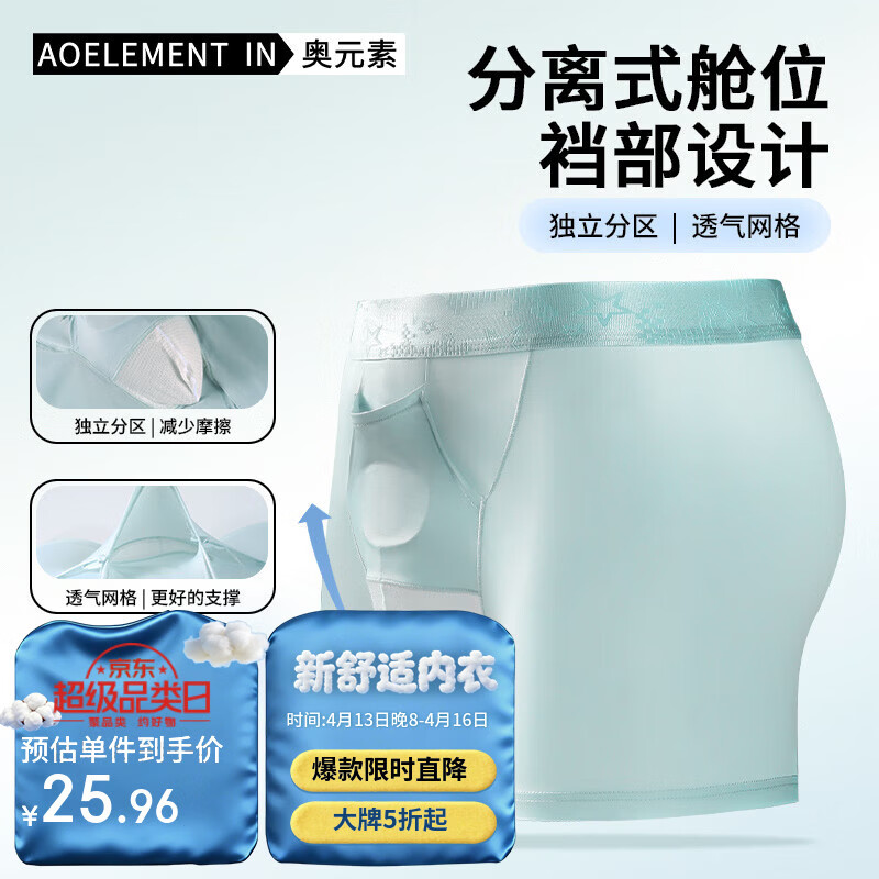 奥元素3条精索枪弹静脉分离冰丝内裤男轻薄凉感阴囊托曲张平角四角裤衩 黑色+白色+浅蓝色 2XL 推荐130-150斤