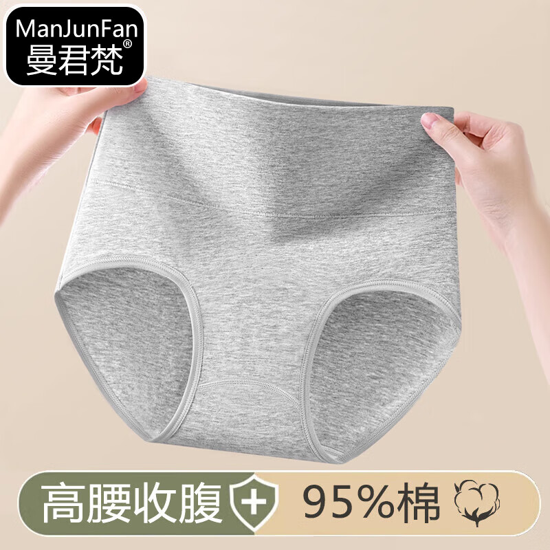 曼君梵 纯棉高腰内裤简约女士纯色棉质三角裤收腹舒适透气高腰亲肤内裤 【3条装】灰色+肤色+粉色 2XL (130-160斤左右)