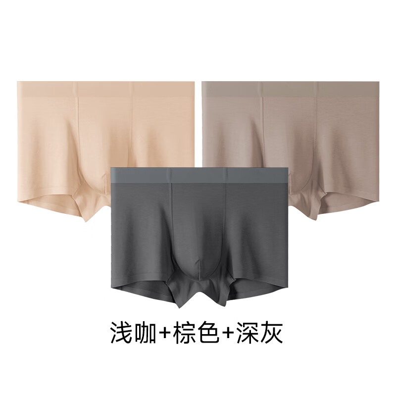 俞兆林男士内裤莫代尔7A级抑菌男款平角裤男生四角短裤头透气裤衩 NSMKU-浅咖+棕色+深灰 3条 2XL (建议140-160斤)