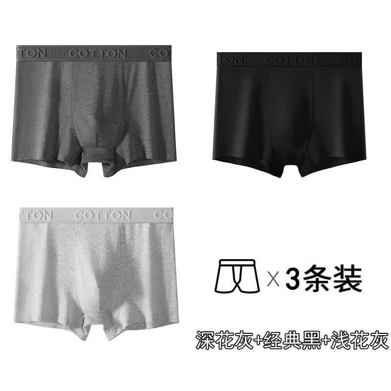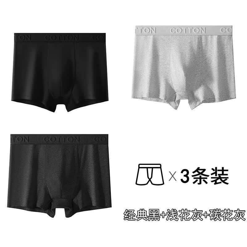 猫人男士内裤纯棉无痕平角裤男款抗菌底裆透气秋冬季男生四角短裤头 黑色 深麻灰 浅麻灰 3条 2XL 【推荐体重130-150斤】