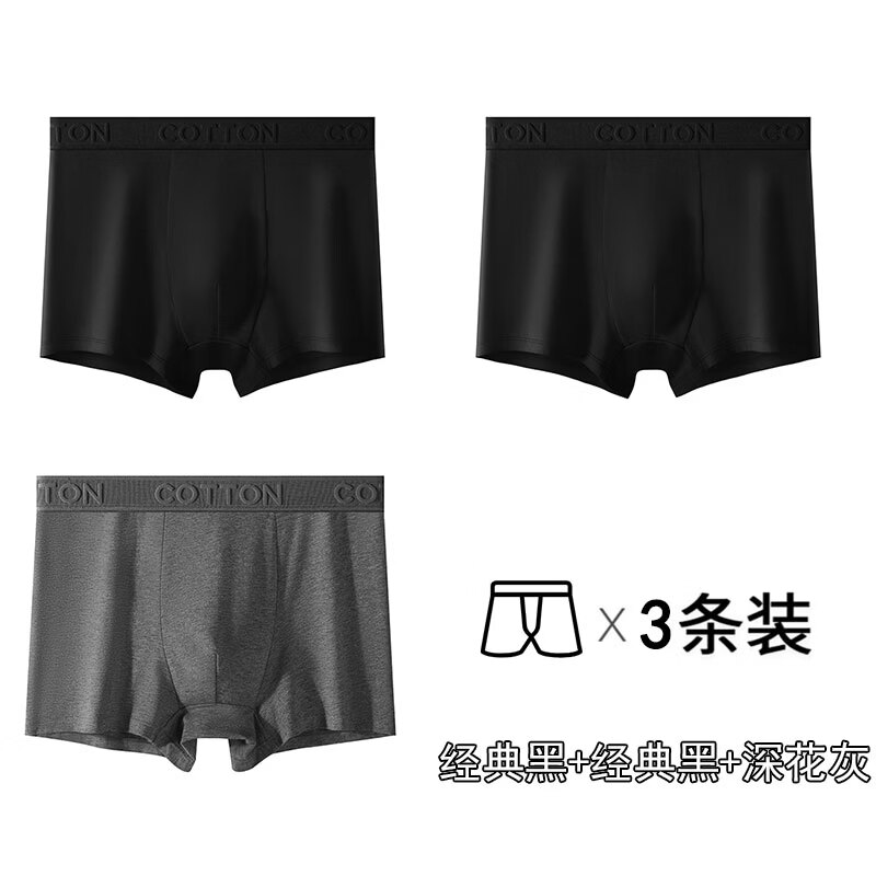 雅鹿灰色内裤男士款纯棉四角2026新款100A抗菌全棉平角短裤头 NSYXW-经典黑+经典黑+深花灰 【100A抗菌】 3条 2XL 【建议120-140斤】