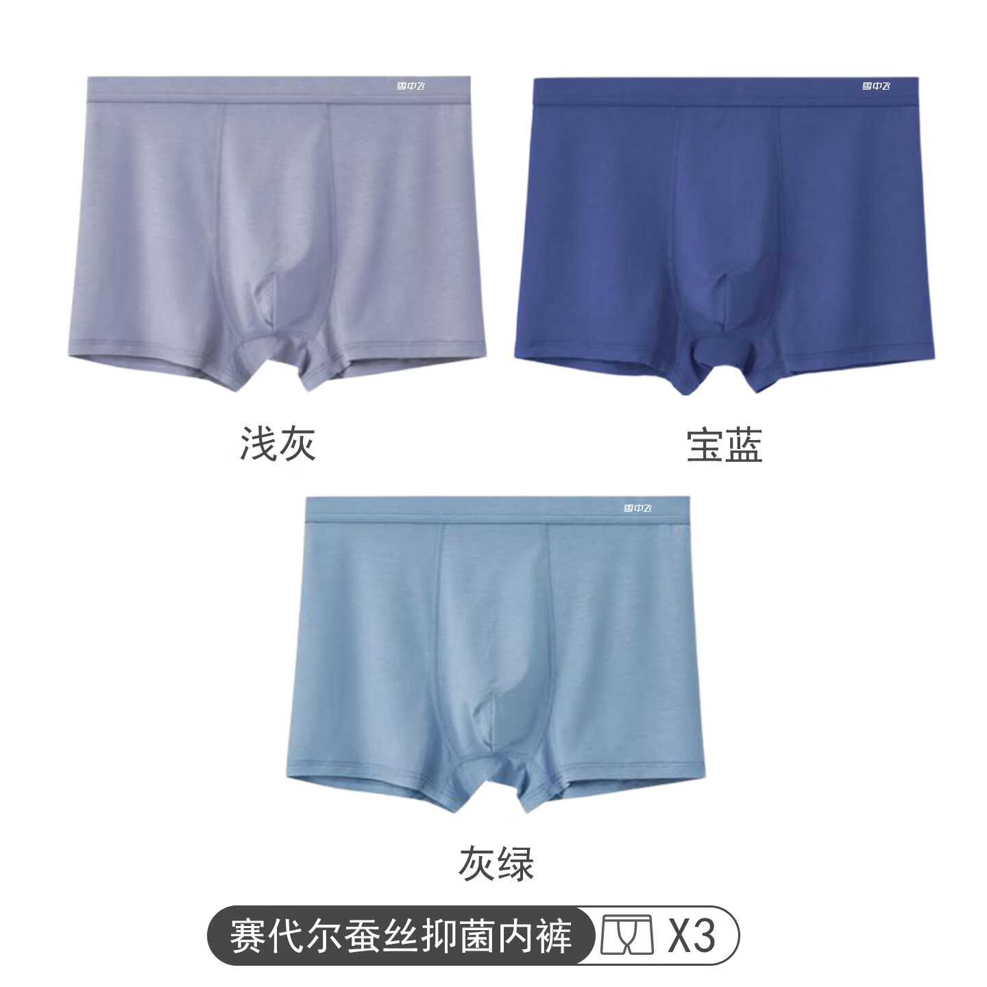 雪中飞80S莫代尔男士内裤男款四角裤无痕透气2026新款男生宽松短裤 XZFZX-浅灰+宝蓝+灰绿 【赛代尔男士内裤】 3条 2XL 【建议125-150斤】
