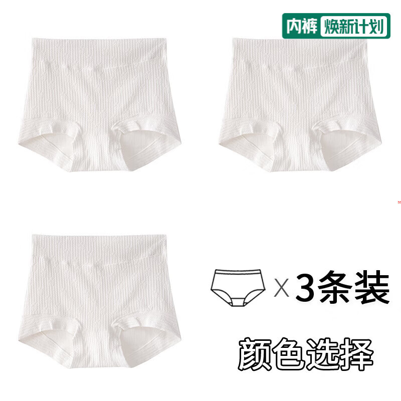 猫人平角内裤女士高腰收腹零染原棉无痕安全裤A类孕婴棉抗菌四角底裤 N组:螺纹棉+螺纹棉+螺纹棉 3条 2XL (建议135-155斤)