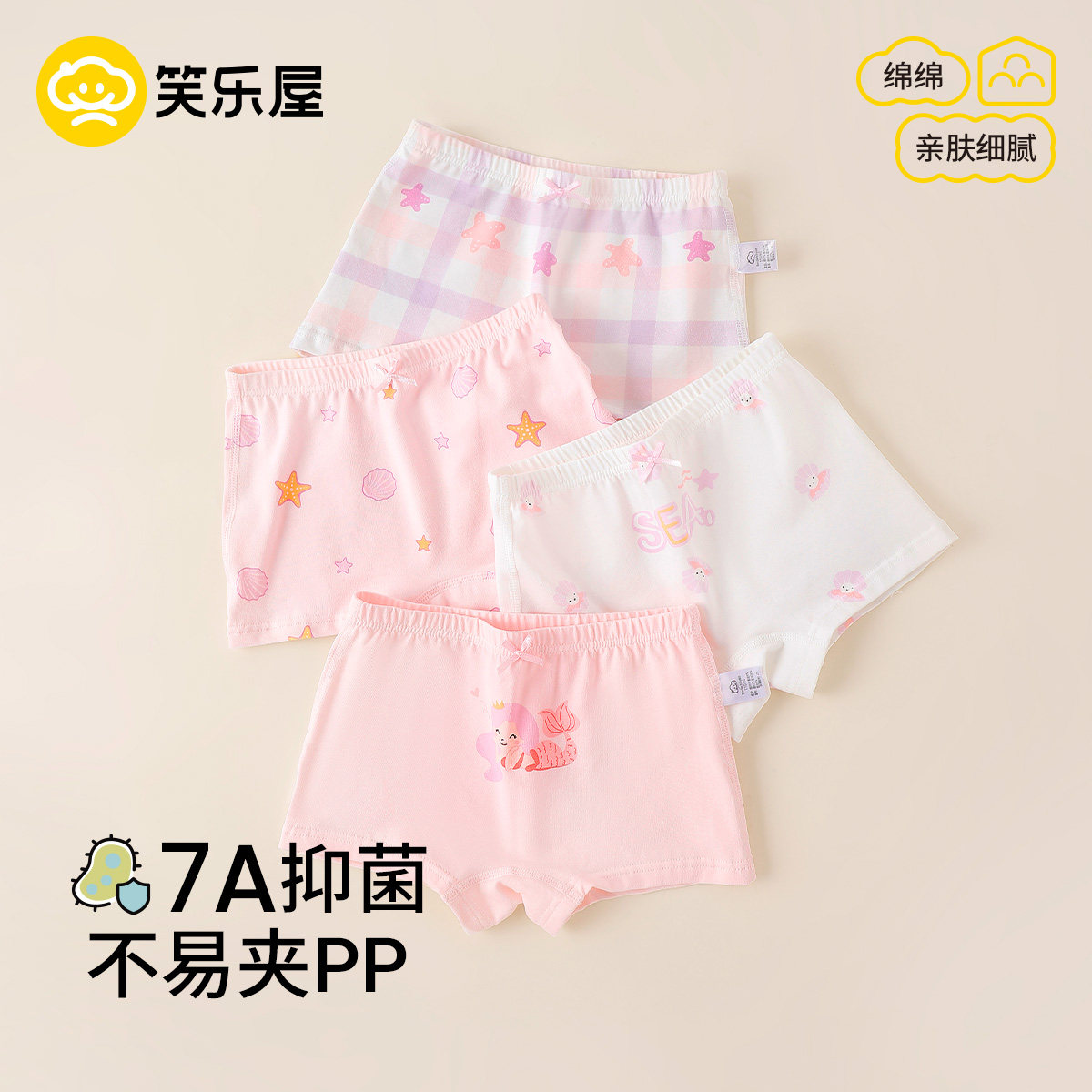 笑乐屋儿童内裤女童纯棉短裤a类宝宝女孩四角裤平角抑菌不夹屁屁