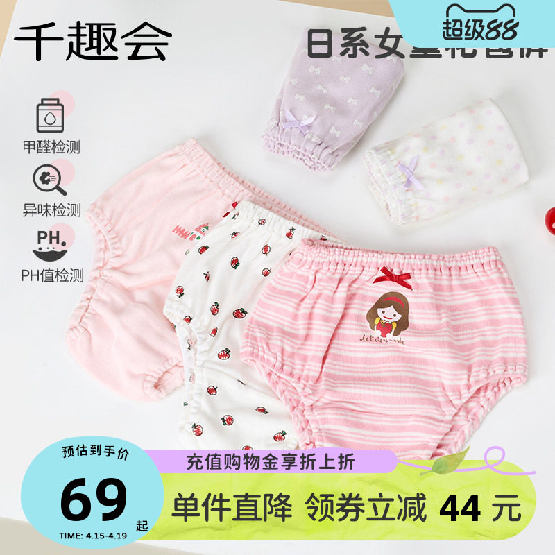 千趣会儿童春季女童纯棉细针罗纹轻薄透气不夹pp花苞内裤3条装