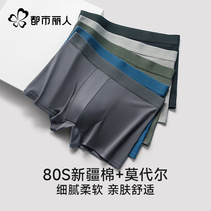 都市丽人男士内裤棉四角裤男生2025新款抗菌莫代尔平角短裤头男款 黑色+深灰+浅灰 3条 2XL 【建议体重130-150斤】