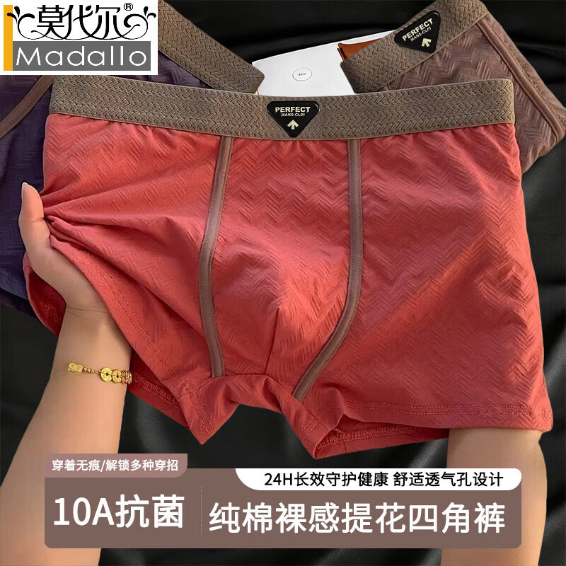 莫代尔男士内裤纯棉10A抗菌高档全棉裆男生2026新款提花无痕男式四角裤 【3条装】紫色+黑色+咖啡 3条 2XL 140-160斤