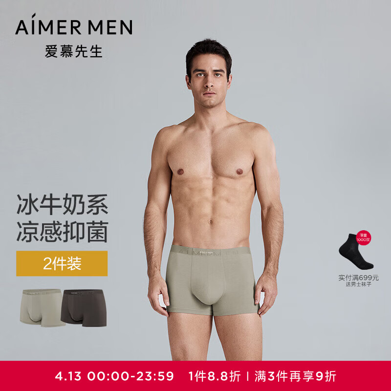 爱慕先生内裤2件包男【冰牛奶系】含牛奶纤维氨基酸润肤凉感透气抗菌内裤 燕灰+ 卡其色ZS1 2条 3XL 185