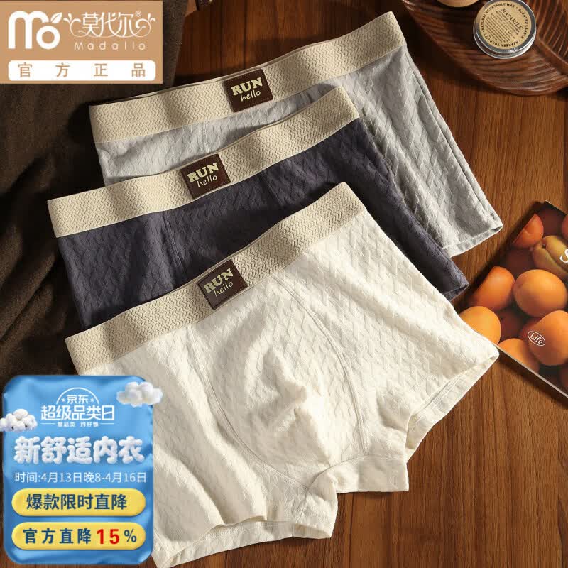 莫代尔纯棉男士内裤男生时尚舒适透气平角裤运动个性青年高档四角短裤头 深灰+浅灰+杏白 3条 2XL 130-150斤