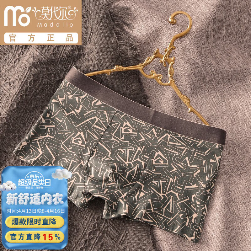 莫代尔男士内裤纯棉字母印花全棉平角裤透气运动潮流个性男生四角短裤头 纯棉3条:墨绿色+藏蓝色+浅灰色 2XL体重120-140斤