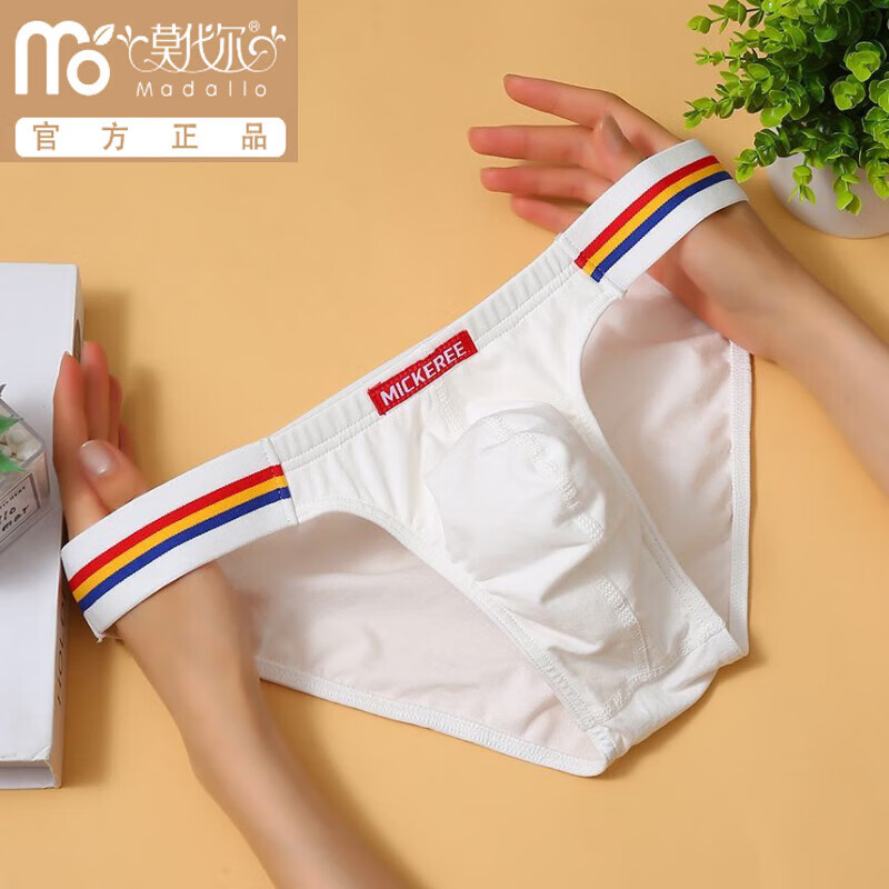 莫代尔男士三角内裤男纯棉舒适透气低腰高叉运动亲肤性感潮流三角短裤衩 白色+黄色+红色(装) 3条 2XL 体重140-159斤