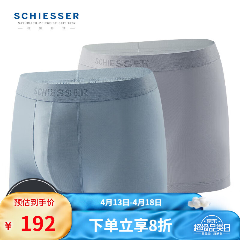 舒雅(Schiesser)男士内裤80S莫代尔桑蚕丝3A抑菌平角裤【混色2条装】E5/19351T 灰蓝+灰色 2条 L