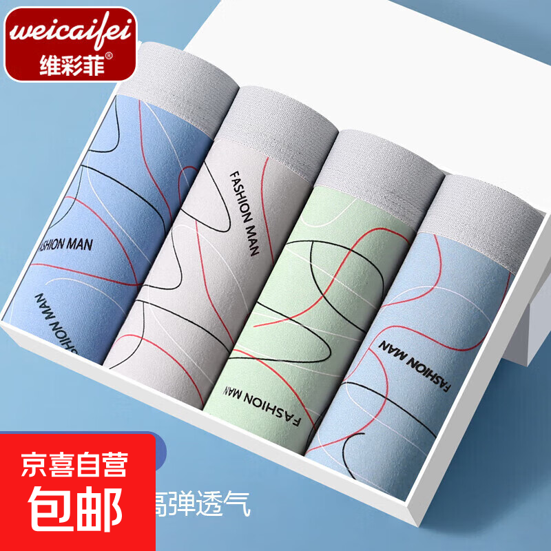 【热销爆款】新款男士内裤曲线条纹舒适高弹潮流平角裤透气四角裤 【2条搭配装】颜色随机 3XL码(145-170斤)