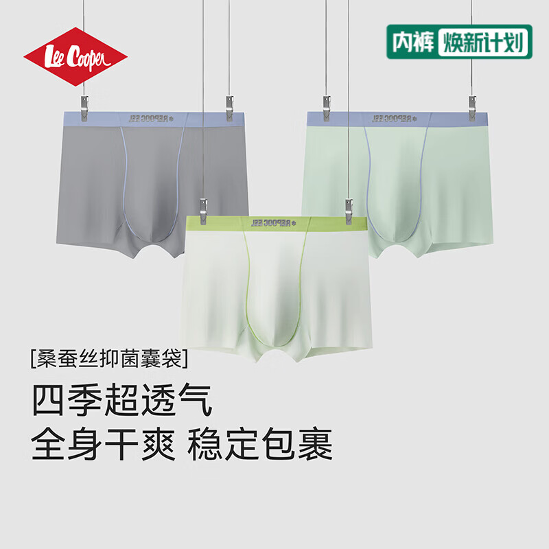 Lee Cooper男士内裤高弹三条装透气抑菌简约舒适不夹臀无痕平角裤衩裤头男 天青石+照夜玉+霁云青 7A抗菌 3条 2XL (185cm/140-160斤)