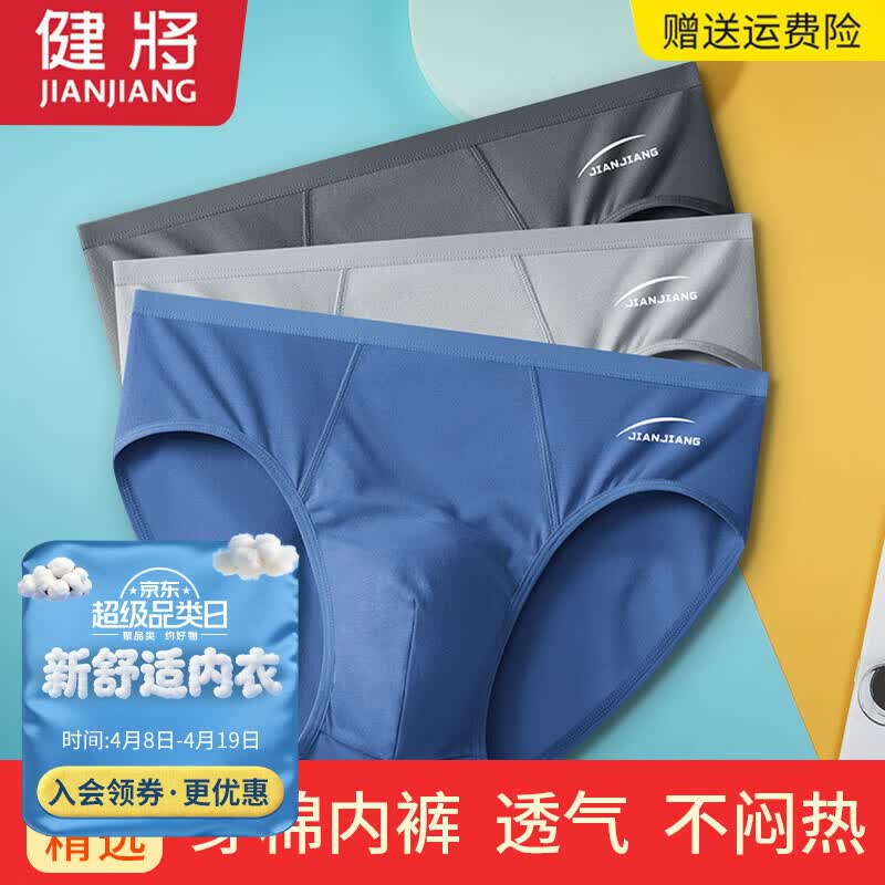 健将男士内裤男棉质男式三角内裤窄边5A级抑菌透气大码肥佬运动裤衩 (深蔚蓝+科技灰+中灰)- 3条 2XL (腰2.6-2.8尺 重145-165斤)