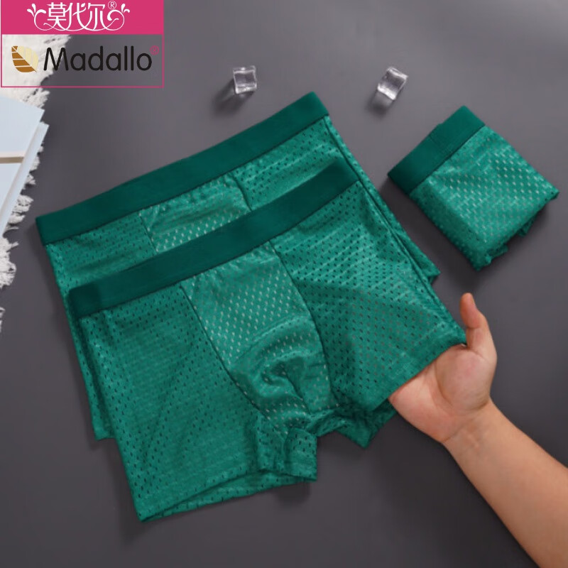 莫代尔男士冰丝内裤男网孔夏季薄款透气男生裤头四角 绿色 3条 2XL