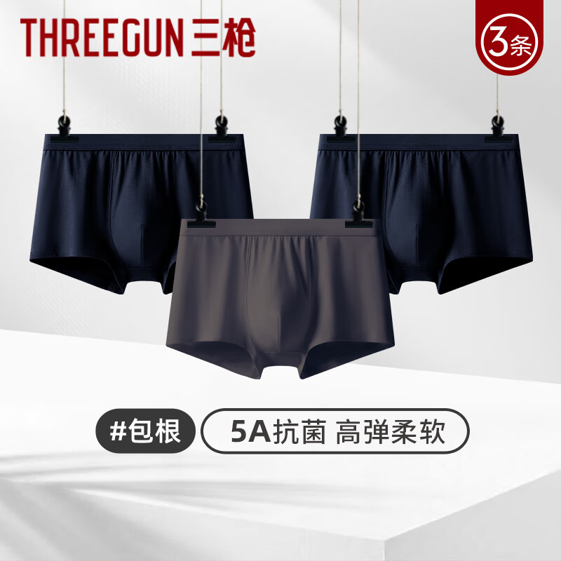 三枪(THREEGUN)男士四角裤青年男士宽松舒适透气内裤中腰抗菌无痕平角裤 3条装 黑藏青+高级灰+黑藏青 3条 2XL