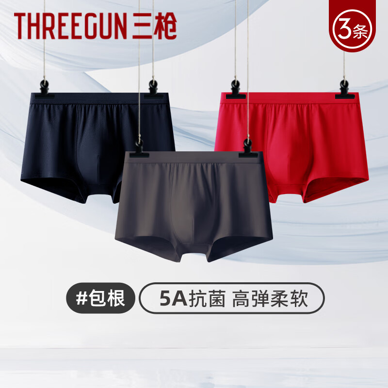 三枪男士内裤透气内裤爽滑亲肤舒木尔包根纯色宽松平角裤四角裤 3条装 黑藏青+高级灰+中国红 3条 2XL