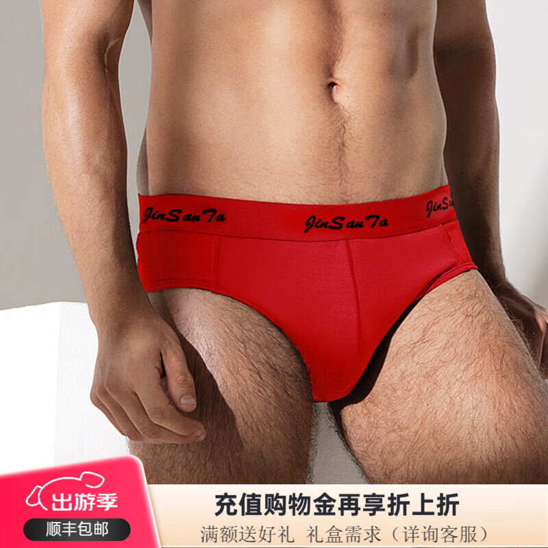 金三塔内裤男100%桑蚕丝亲肤透气中腰内裤两条装3NZM063 大红 2条 XL