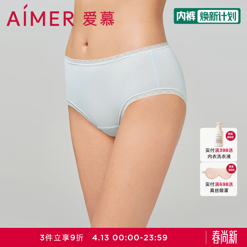 爱慕内裤女(3件包)意棉棉中腰平角裤AM238941 素色ZS2 M (165)