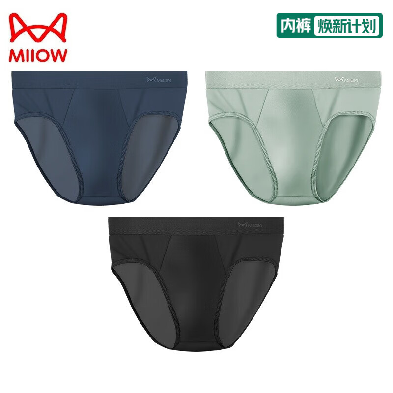 猫人(MiiOW)男士内裤3条男三角裤冰丝舒适透气夏季抗菌男式大码宽松中腰裤头 宝蓝+灰+黑 3条 2XL (120-140斤)