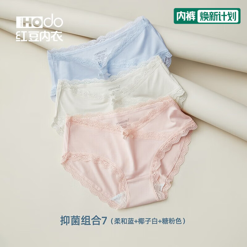 红豆(Hodo)女士莫代尔抗菌内裤蕾丝性感中腰短裤透气少女式三角裤头3条装 组合七 3条 2XL (175)