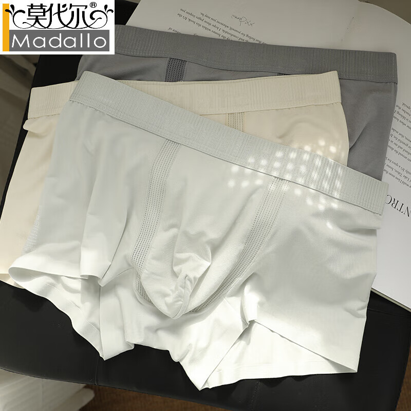 莫代尔桑蚕丝裆男士内裤男无痕莫代尔宽松四角裤抗菌透气男学生大码裤头 深灰色+银灰色+象牙白 3条 2XL 2XL